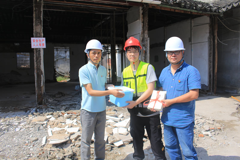8月4日,园林集团工联会副主席戴家栋等一行人前往香山古建承建的苏州悬桥巷修缮工程项目工地进行慰问。慰问组将防暑降温用品、日常用品、各类安康手册与党史学习教育指定学习资料送到了工友手中,收到慰问品后,工友们喜笑颜开,幸福满满。随后,园林集团安委会与香山党群对项目现场进行了质量安全、文明施工等工作的检查督查,并重点强调安全生产、饮食卫生、疫情防控等重点工作。
