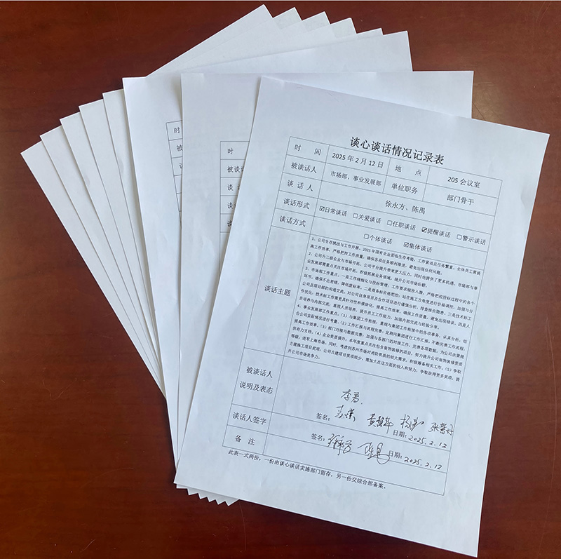 在追求卓越、砥砺前行的征程中,为全方位洞悉各部门的工作态势、精准把握员工需求并有效化解潜在问题,进一步密切公司高管与各部门间的沟通桥梁,全方位推动公司高质量稳健发展,公司精心筹备,于2月12日起开展了经营层与各部门业务骨干的谈心谈话活动。